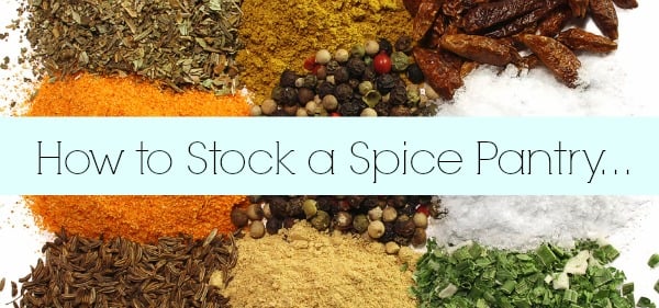 EXTRAS: Technically not spices, but these seasonings and herbs will help round-out your “spice pantry”: Bay leaves, Fennel Seed {Makes a great breath freshener!}, Kosher Salt, Garlic Powder, Mustard Seed Onion Powder, Oregano, Rosemary, Tarragon, & Thyme.